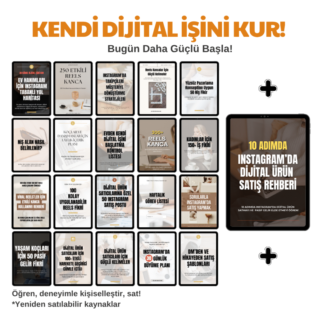 Dijital ürün satacaksan / yeni başladıysan sağlıklı ilerlemene yardımcı olacak bu zengin içerikli set tam sana göre! (Yeniden satış hakkı içerir)